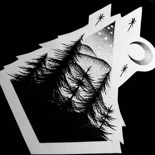 J'aime beaucoup dessiner des paysages, surtout des forêts et des montagnes vous l'aurez remarqué ! Et j'adore travailler ce thème en Dotwork, technique qui consiste à piquer des petits points afin de révéler un motif ou de créer un dégradé. On peut ainsi donner une impression de profondeur ou de brume très intéressant.
